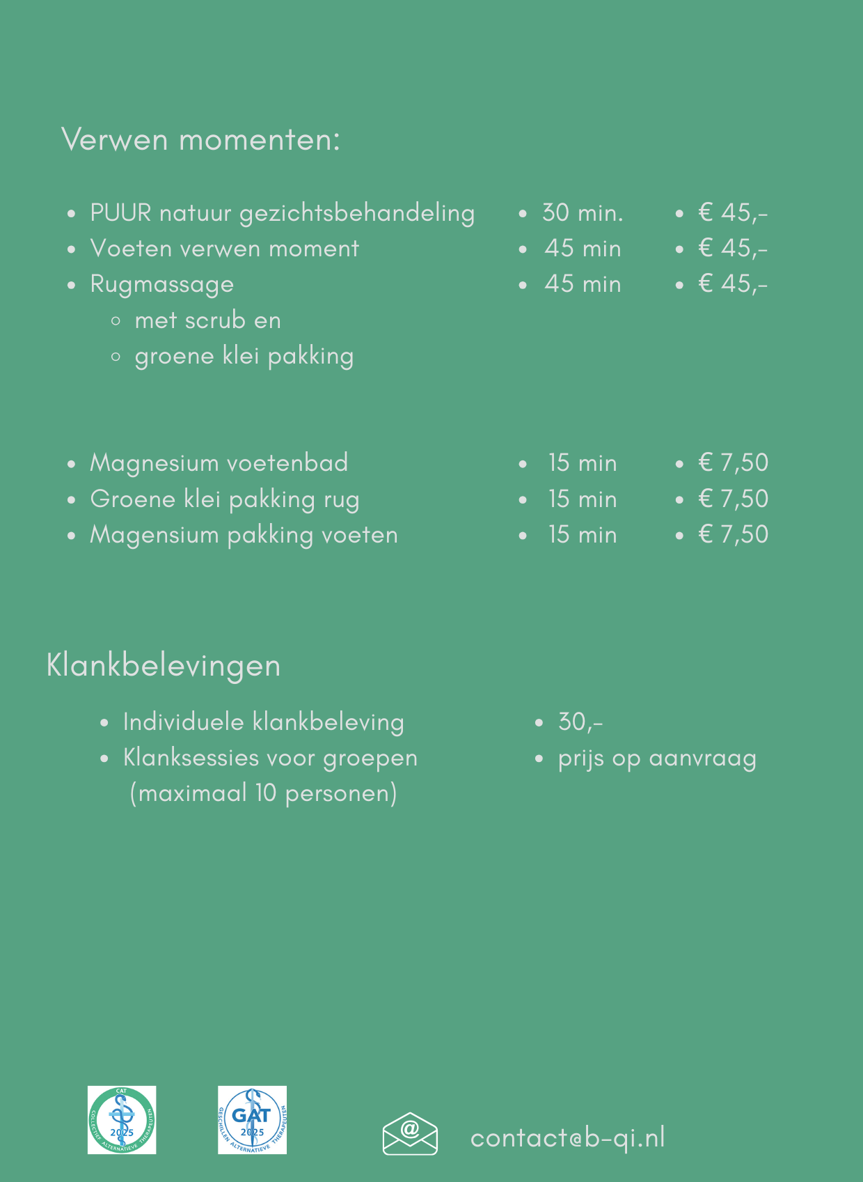 Wil je meerdere behandelingen tegelijk boeken? Vraag dan naar de mogelijkheden.